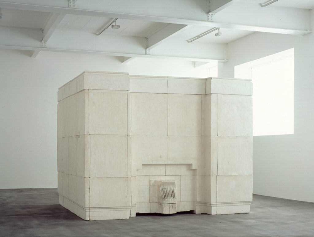 Rachel WHITEREAD, Ghost, 1990, plâtre avec structure en acier, 269 × 355,5 × 317,5 cm → Moulage du vide, solidification de l’espace, transformation par inversion : le vide devient matière.