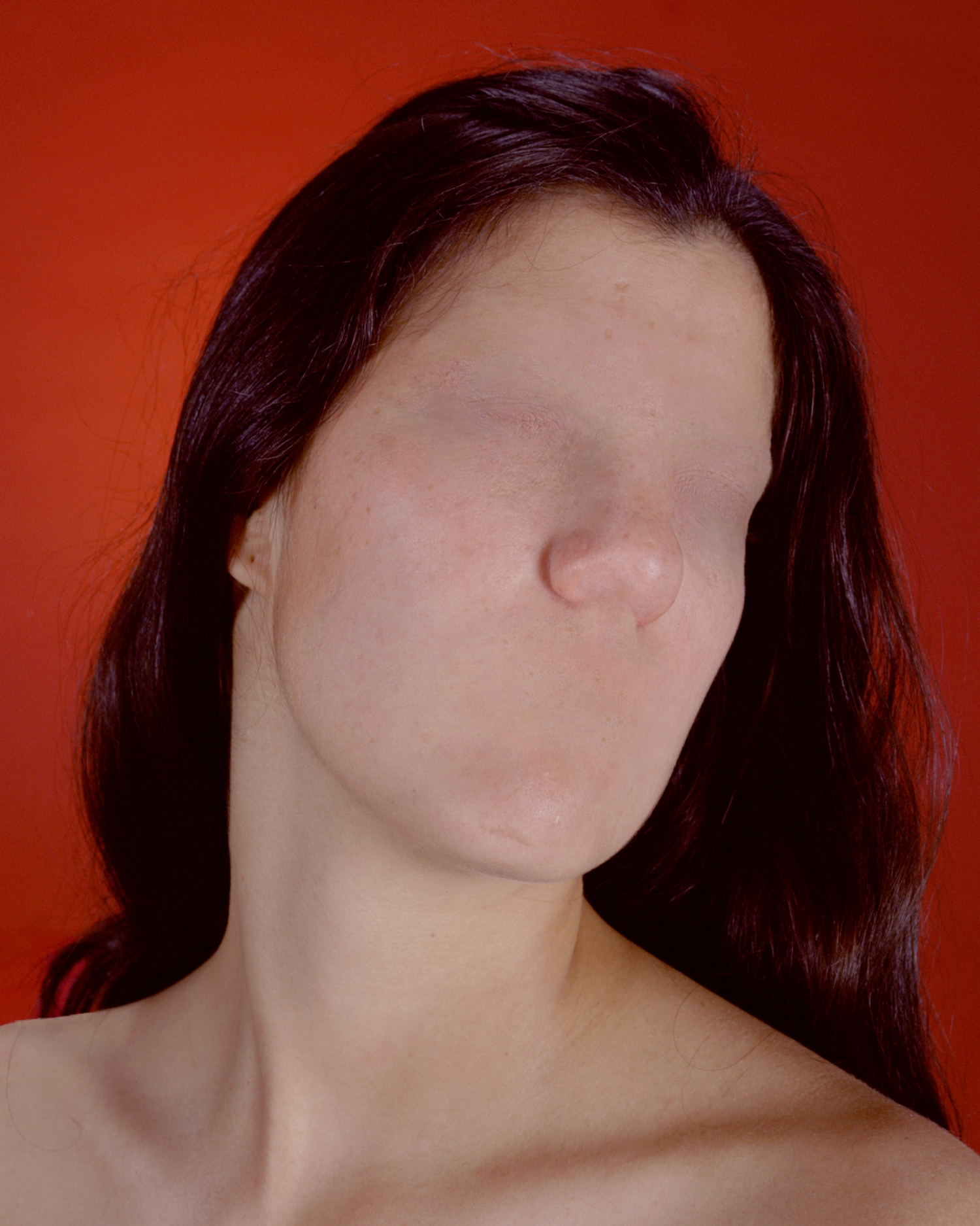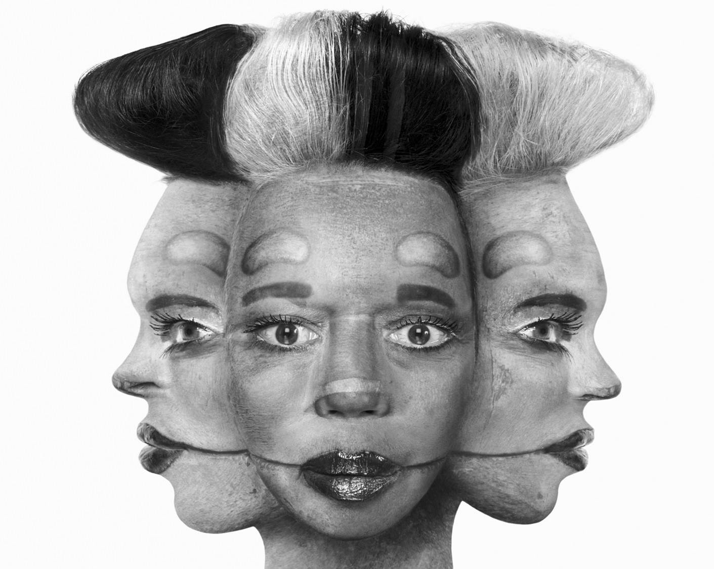 - ORLAN (1947), Self-hybridation africaine, masque tricéphale ogoni du Nigeria et visage mutant de femme franco-européenne, 2002, photographie couleur, 125 x 156 cm, Coll. particulière