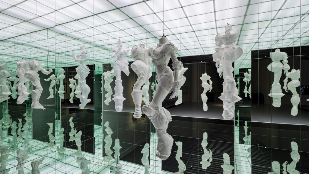 - Lee BUL (1964), Cyborg W1, W2, W4, W6, 2021, sculptures d’androïdes fragiles et féminins, questionnant la perfection artificielle, vue de l’installation Humain, 7 questions au Leeum Museum of Art, Séoul, Corée