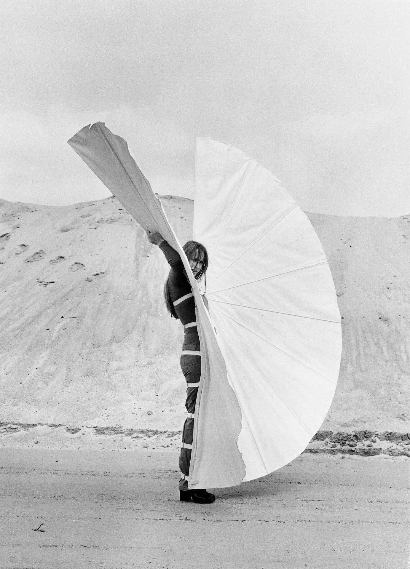- Rebecca HORN (1944-2024), White Body Fan, 1973, film 16 mm, couleur, sonore, armature et toile et prolongeant le corps (extensions poétiques)