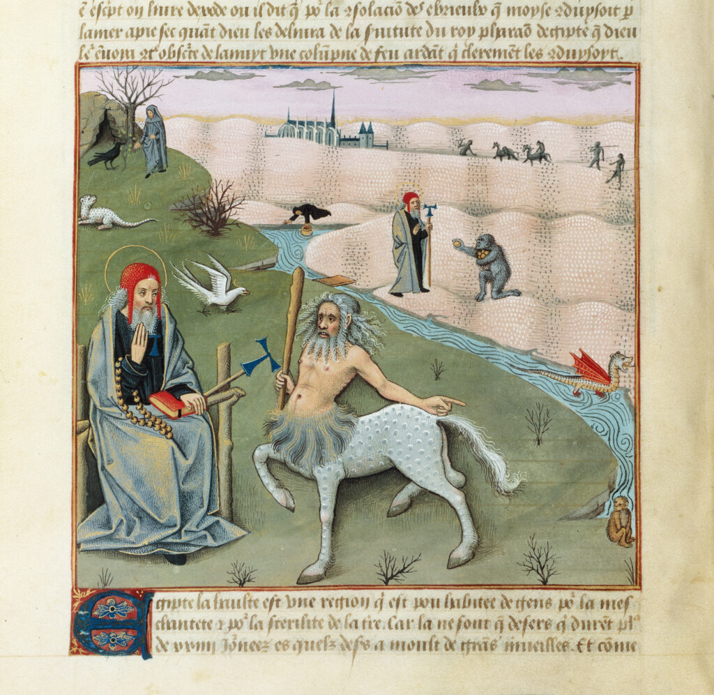 - Robinet TESTARD (1471-1531), Saint Antoine et le centaure, 1480-1485, parchemin, 95 feuillets, 30,5 × 21 cm, BnF, département des Manuscrits
