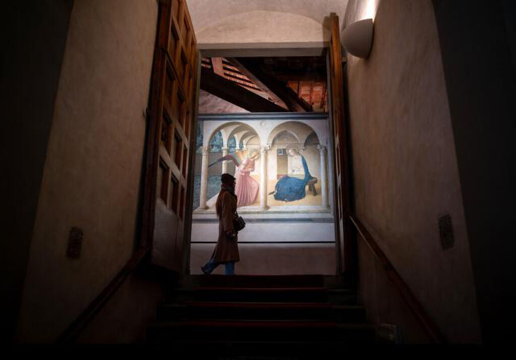 Fra ANGELICO, L’Annonciation, 1438-1450, fresque peinte sur le mur du corridor nord, juste en face d’un escalier, couvent de San Marco, à Florence, 230 × 297 cm, Coll. museo nazionale di San Marco, Florence