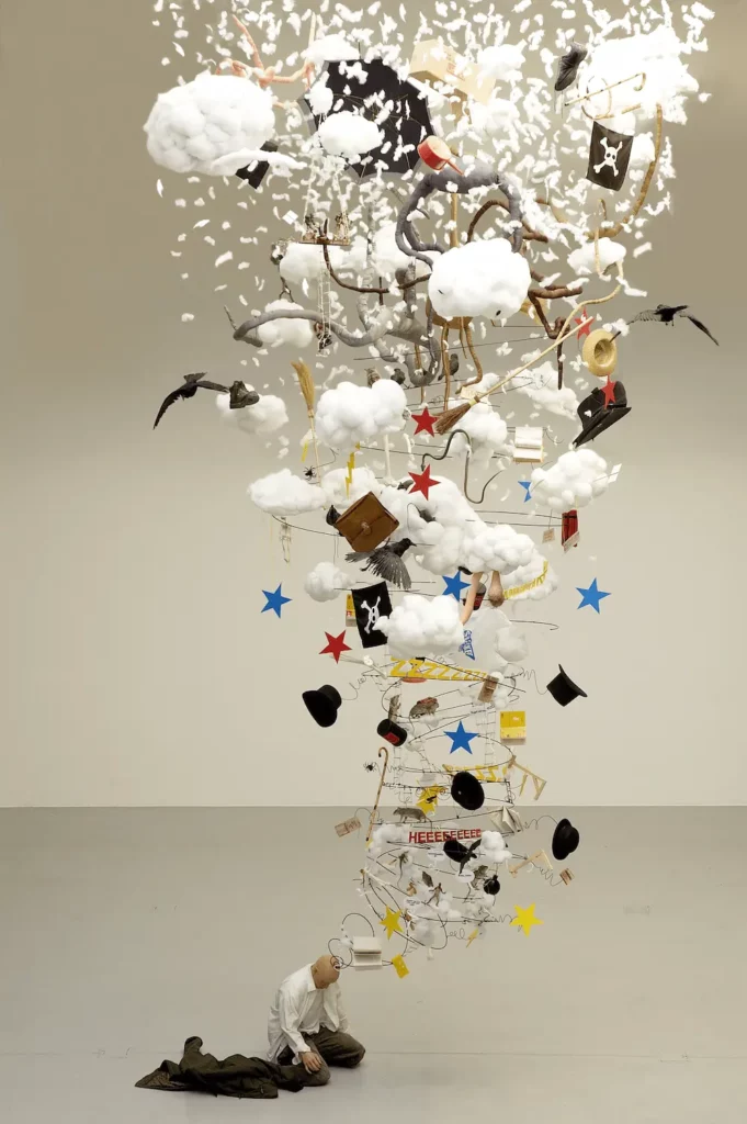 Gilles BARBIER, L’Ivrogne, 1999-2000, installation, technique mixte et dimensions variables, Collection MAC Val, Vitry → séquentialité spatialisée, simultanéité des temporalités.