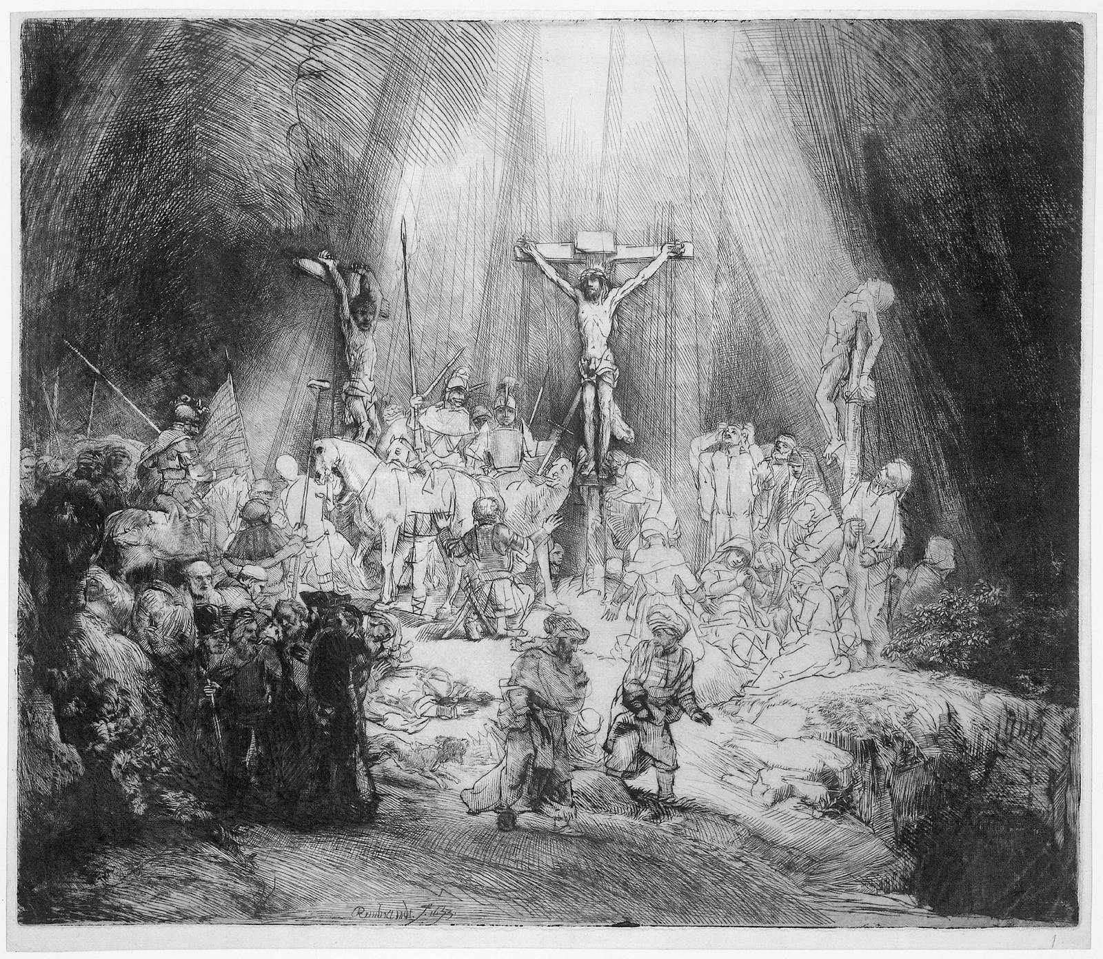 REMBRANDT (1606-1669), Les Trois Croix, 1653, eau-forte.