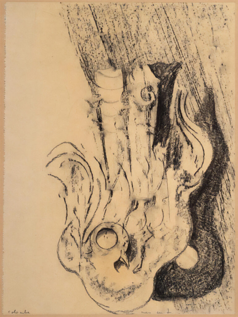 Max ERNST (1891-1976), Colombe, 1928, frottage de mine graphite sur papier, 30,8 x 22,9 cm, Cabinet d’art graphique, Centre Pompidou, Paris