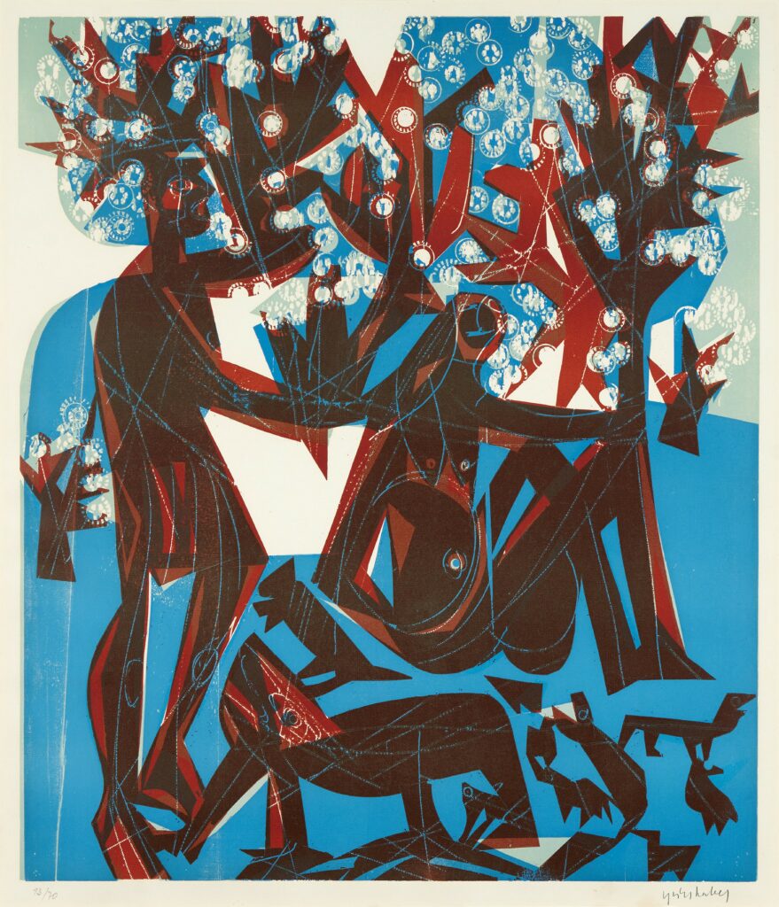 H.A.P. GRIESHABER (1909-1981), Baumblüte, 1963, gravure sur bois, estampe six couleurs sur vélin, 75,5 x 64,5 cm, Coll. particulière