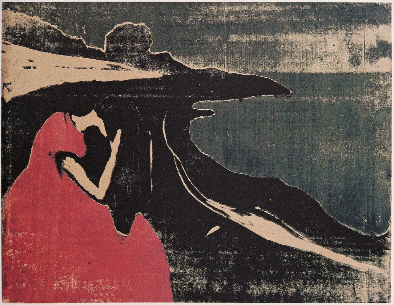 Edvard MUNCH (1863-1914), Melancholy II, 1898, gravure sur bois en couleurs, rehaussée à la main sur papier brun, montée sur carton léger