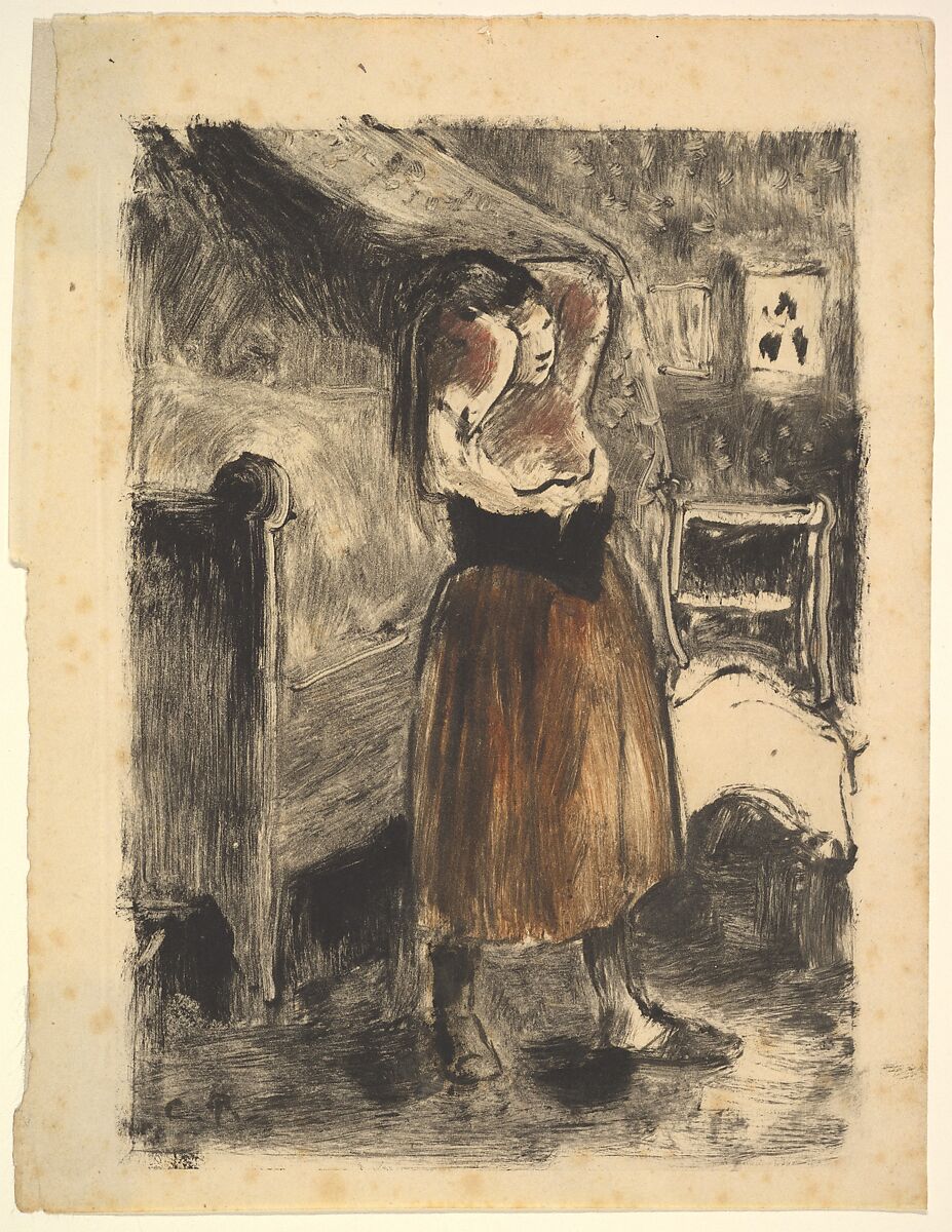 Camille PISSARO (1830-1903), Femme arrangeant ses cheveux, 1894, Monotype in black and red inks on wove paper, 17.8 x 12.5 cm, The Metropolitan Museum of Art, New York
